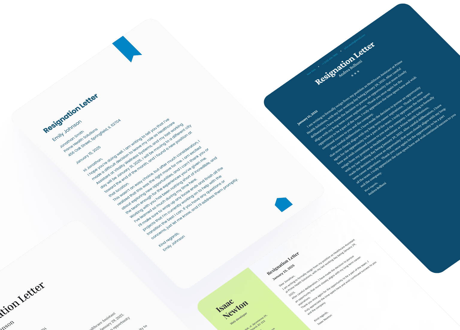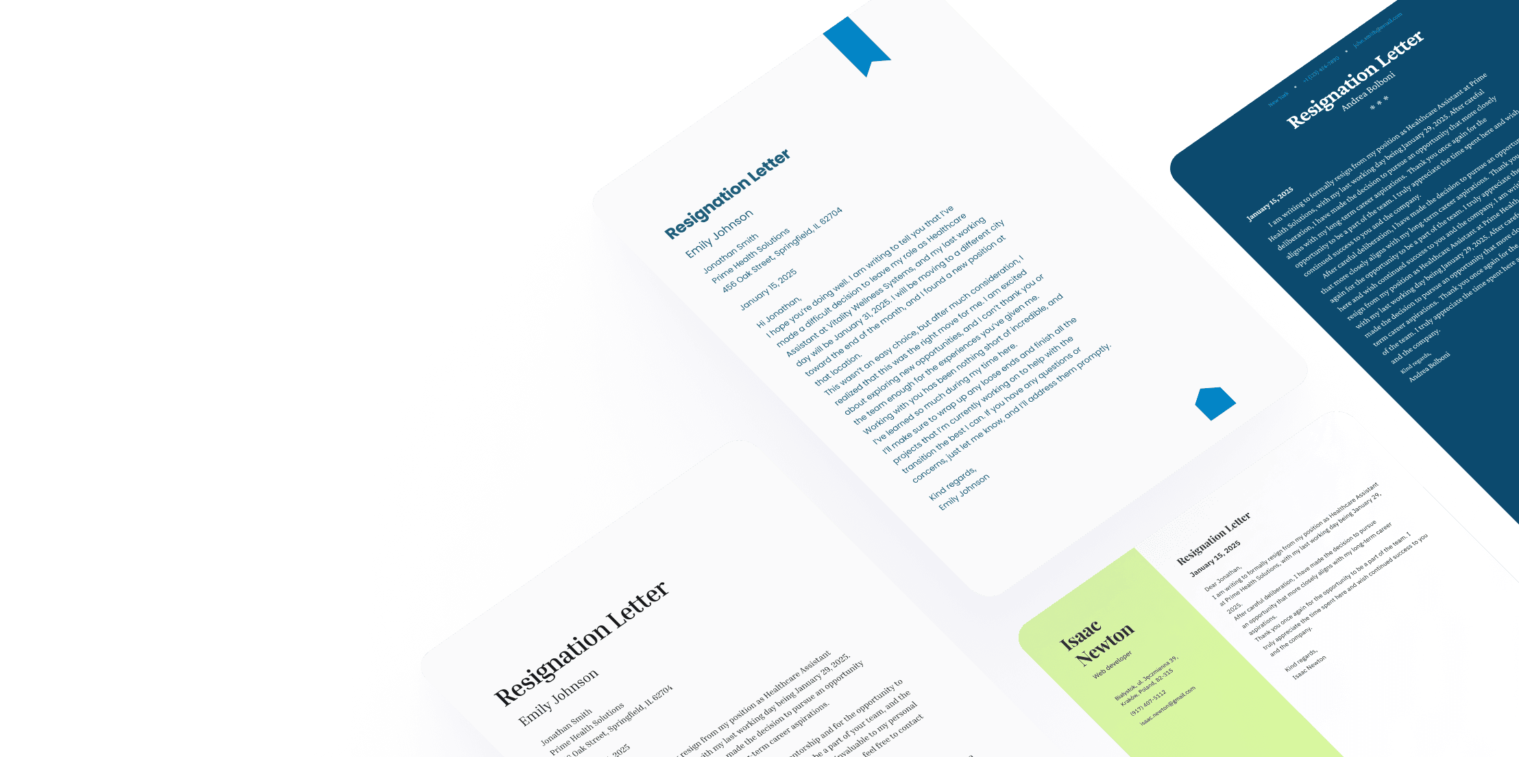 Quickly create a professional resignation letter to end contracts on good terms and ensure lasting positive impressions.